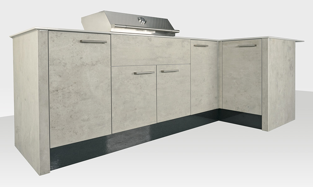 The Classic style outdoor kitchen range, features sintered stone doors and drawer fronts that include a choice of durable handles, suitable for outdoor use. Handles are available in a range of styles and finishes to suit your preferred look.